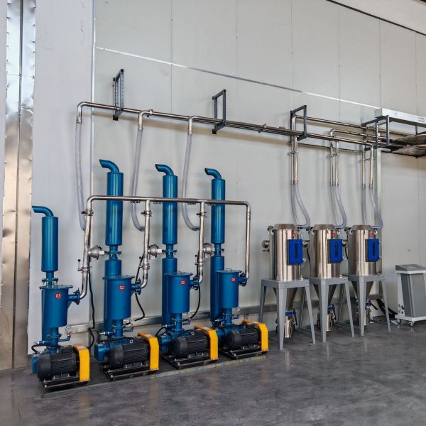 中央供料系统采用一台机一根管,密封式回路设计方式,保证整个系统运行稳定,绝无塑胶回潮、堵料现象发生。它配合中央干燥机(除湿机)系统使用,可使干燥空气对原料进行再次干燥,防止干燥后的塑胶回潮,同时在每个输送循环后对输送管进行清理,确保管道内没有残料。在避免原料回潮的同时也保证加入注塑机中原料一致性,在真空负压同进作用下,原料中原有的粉尘经过过滤器(集尘器)系统滤出,有利提高产品质量。